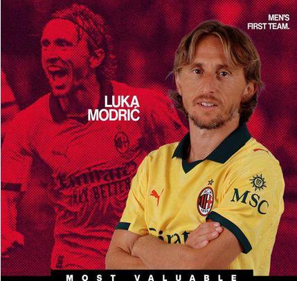 AC米兰官方:莫德里奇打进意甲生涯首球并当选MVP